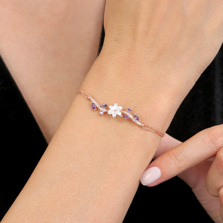 Amethyst Bloom Bracelet in Rose Gold