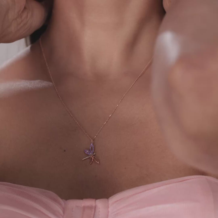 Amethyst Dragonfly Flight Necklace In Rose Gold