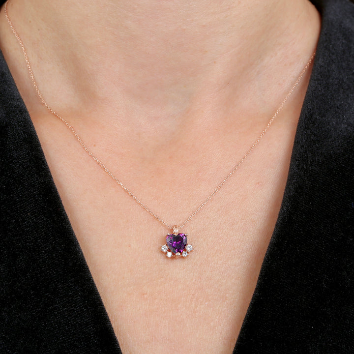Celebrate elegance with the INAARA Amethyst Heart Pendant, a timeless piece crafted in certified 925 sterling silver. At its center lies a radiant heart-shaped purple gemstone, symbolizing love and intuition, flanked by shimmering cubic zirconia accents that add a touch of brilliance.