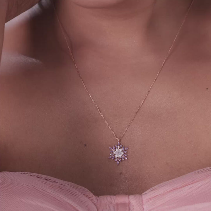 Purple Amethyst Snowflake Flower Necklace In Rose Gold