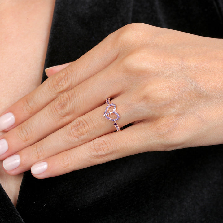 A delicate emblem of quiet devotion, Amethyst Whisper places a heart-shaped cluster of soft purple gemstones at its centre, with pavé accents tracing the band for a continuous, gentle sparkle. Crafted in 92.5 sterling silver with a warm gold finish, the ring is designed to feel light and personal on the finger, making it perfect for everyday wear or as a tender token for special moments.