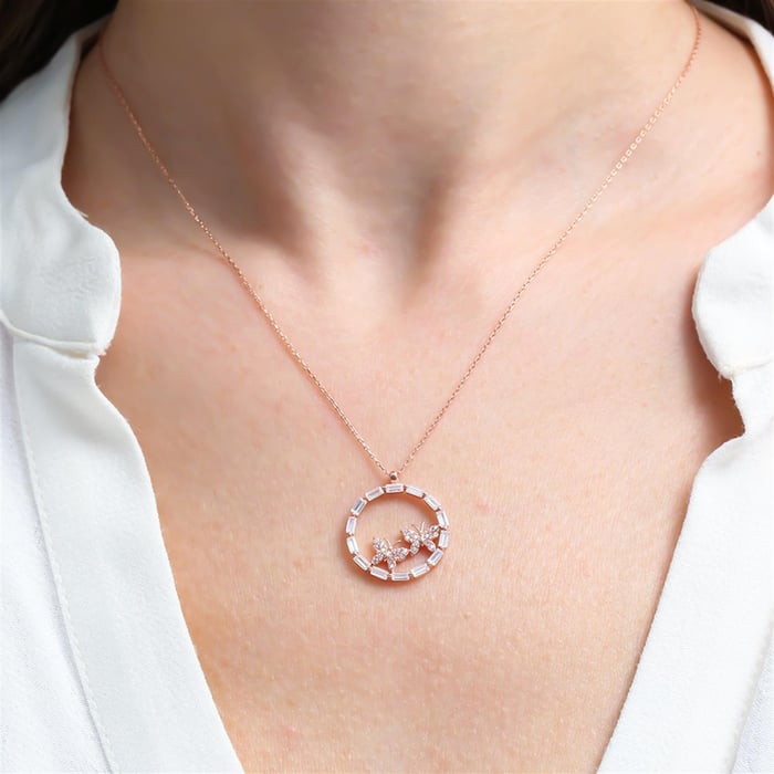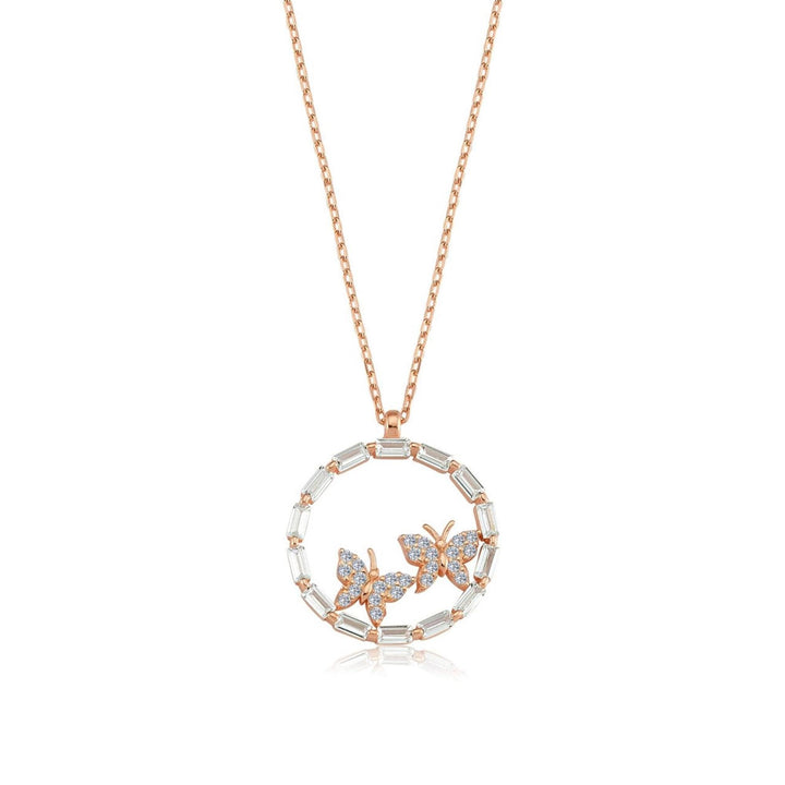 Two butterflies forever in flight inside a circle of baguette-cut zirconia, symbolising transformation and new beginnings. Each element is carved from premium, hallmarked 925 Sterling Silver, then finished with rhodium so the lustre stays bright—even after countless wears. Hand-assembled by master jewellers, it adds a soft, feminine glow that moves effortlessly from casual coffee runs to elegant evenings.