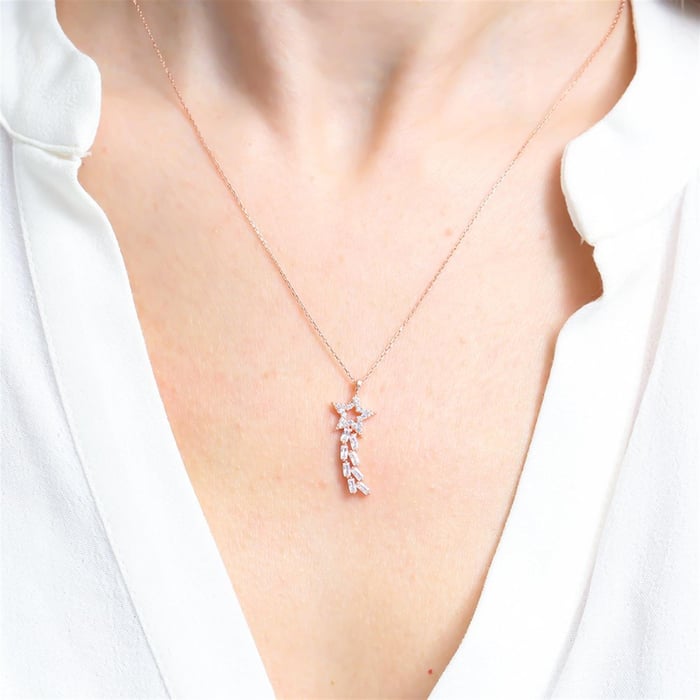 Catch your own falling star: a pavé-set crystal star leads a cascade of baguette stones that twinkle with every movement. Forged from hallmarked 925 Sterling Silver and shielded by an ultra-bright rhodium layer, the pendant keeps its starlit sparkle season after season. Lightweight, meaningful, and handmade—perfect for both everyday wishes and special-occasion glamour.