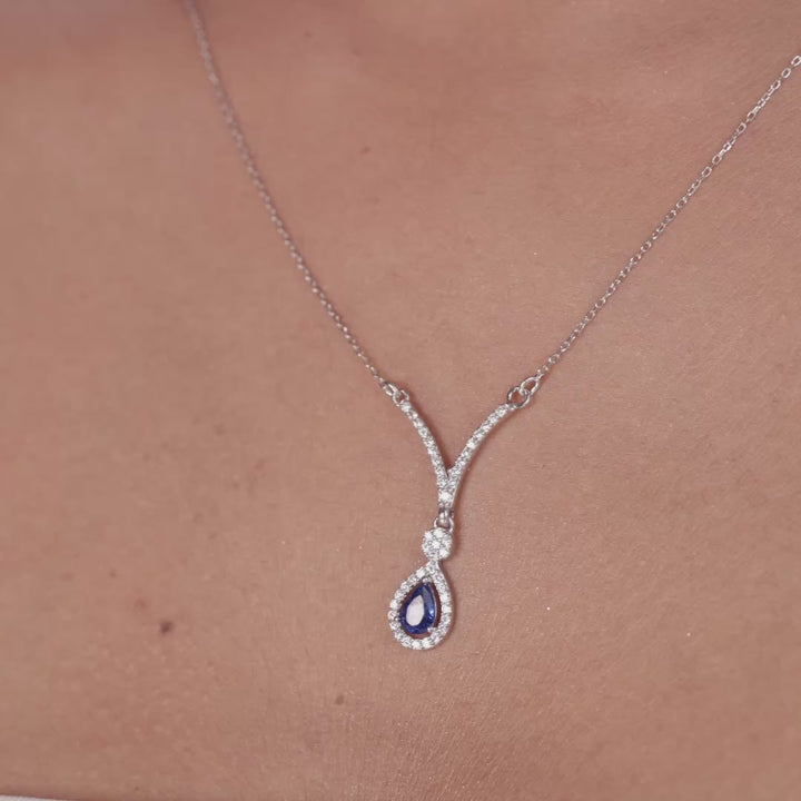 The same sleek Y-shape, this time ending in a deep blue teardrop that catches the light with every move. It’s dressy enough for weddings but still subtle for everyday wear, adding a calm splash of colour to monochrome looks. A go-to piece when you want quick polish with zero fuss.