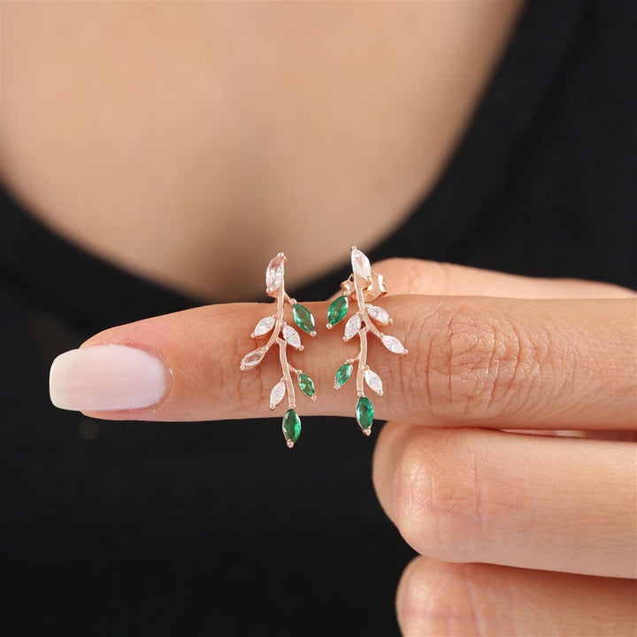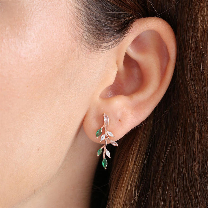 Sleek branch design tipped with alternating emerald-green and clear stones for a fresh pop of colour. Lightweight push-backs keep them comfortably in place from brunch to cocktail hour.