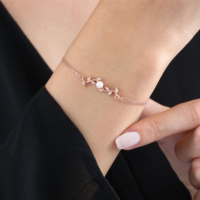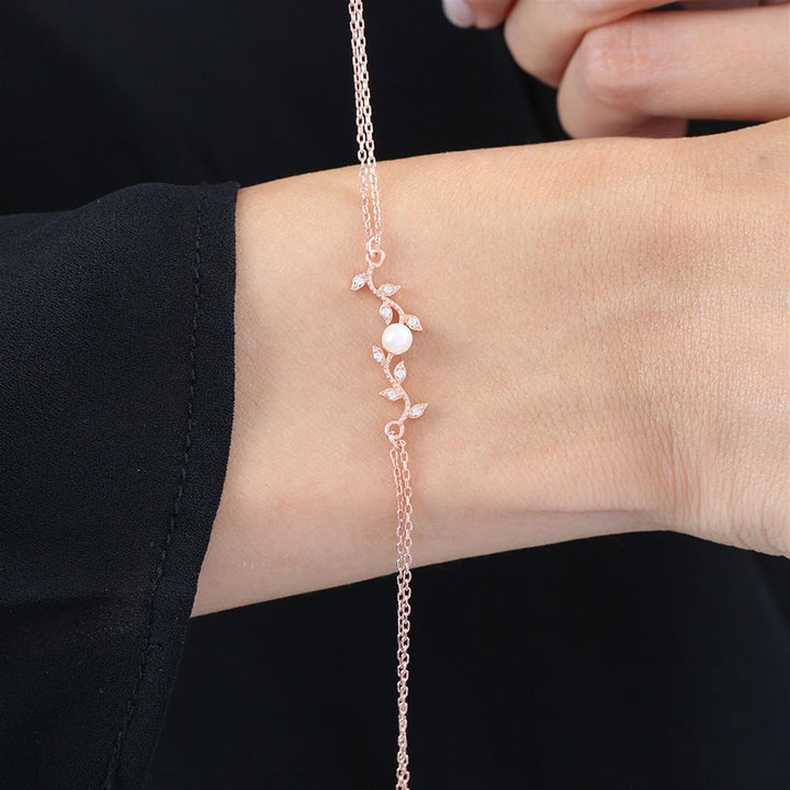 A petite freshwater pearl nestles among crystal-tipped leaves on a slim double chain, giving your wrist a quiet bloom of elegance. Lightweight and adjustable, it slips under shirt cuffs without snagging, yet still adds a hint of softness to any look. Perfect for everyday polish or gifting when you’re after understated charm.