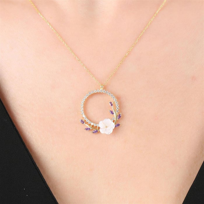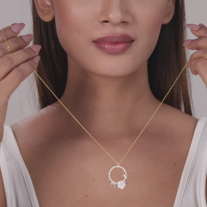 Amethyst Magnolia Flower Crown Necklace In Gold