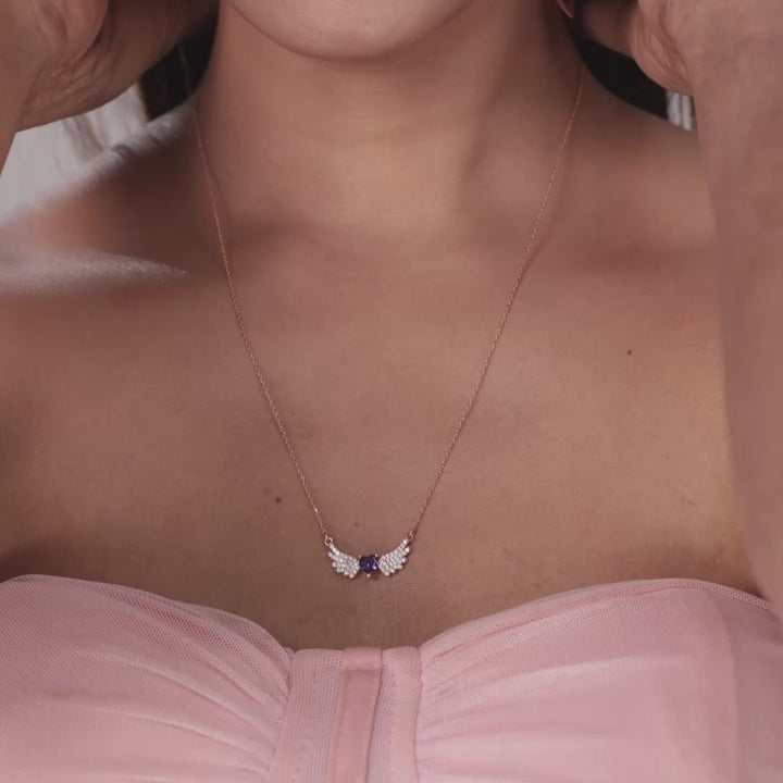 Amethyst Angel Wing Heart Necklace In Rose Gold