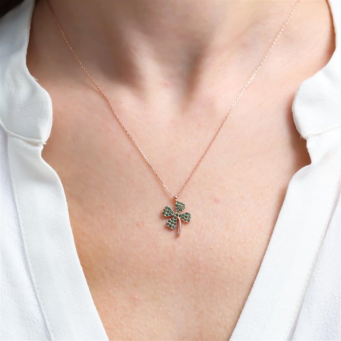 Emerald Clover Sparkle Necklace In Rose Gold
