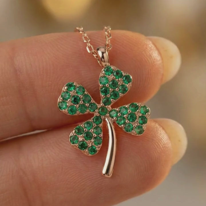 Carry a little good fortune wherever you go. Four glittering leaves, pavé-set with vivid emerald-green zircons, fan out from a rose-gold polished stem—hand-forged in hallmarked 925 Sterling Silver. A whisper-thin rhodium finish locks in colour and brilliance, while artisan craftsmanship ensures every facet catches the light. Ideal for layering by day or adding a pop of colour after dark, it’s luck that looks luxurious.
