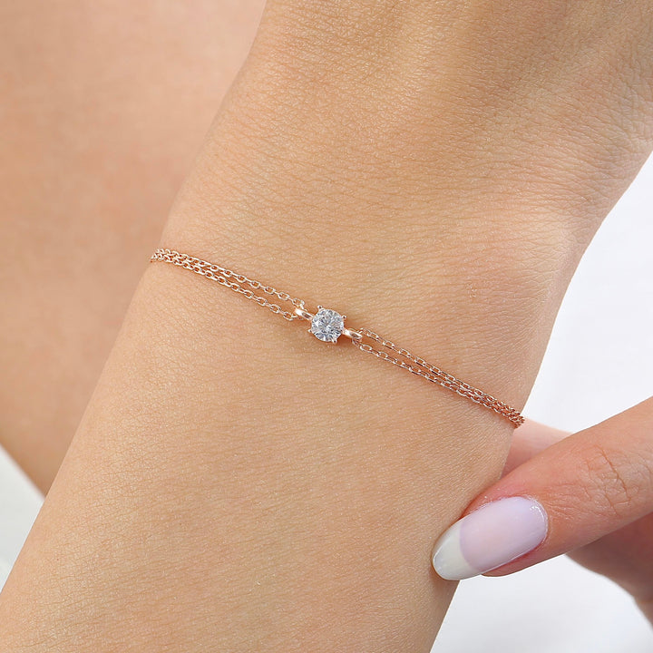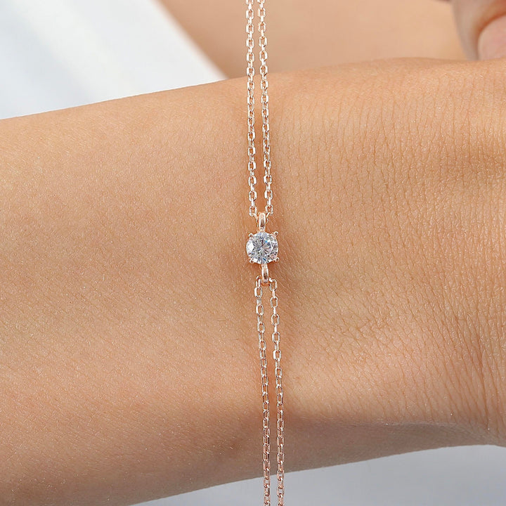 A single clear stone sits on a warm rose-gold double chain, giving just the right hint of shimmer without stealing the show. Feather-light and fully adjustable, it layers effortlessly with bangles or pairs neatly with your daily watch. The go-to piece for minimalists and a fail-safe gift when you’re unsure of their style.