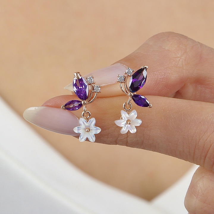 Lavender Magnolia Flutter Drop Earrings In Rose Gold