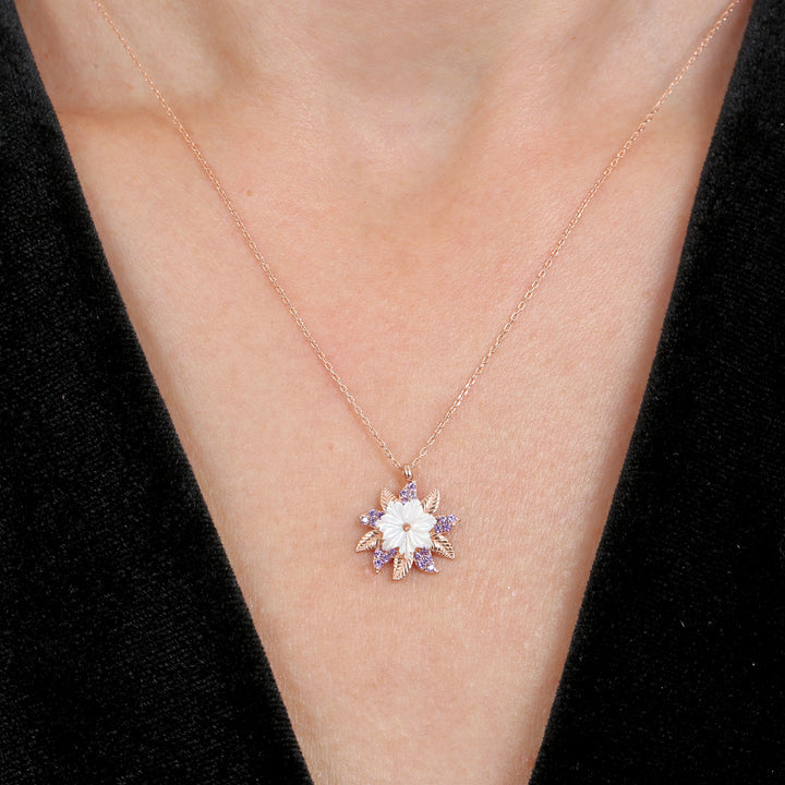 Lilac Sun Magnolia Necklace in Rose Gold
