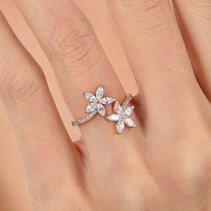Twilight Blossom Open Ring – Rose-Gold