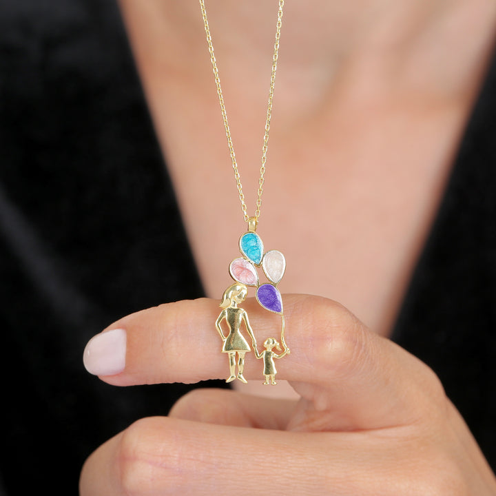 Celebrate the unbreakable bond between mother and child with this elegant 925 sterling silver pendant, featuring colorful balloon accents that symbolize love, joy, and togetherness.