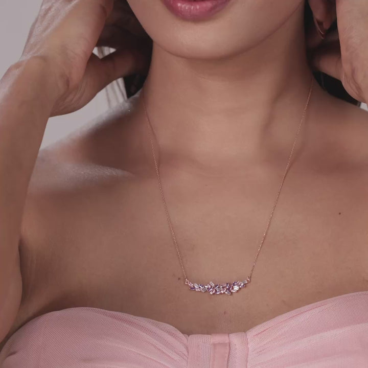 Pastel Baguette Bouquet Necklace In Rose Gold