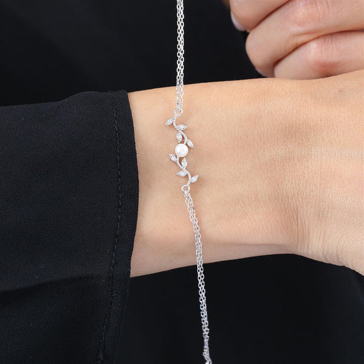 A petite freshwater pearl nestles among crystal-tipped leaves on a slim double chain, giving your wrist a quiet bloom of elegance. Lightweight and adjustable, it slips under shirt cuffs without snagging, yet still adds a hint of softness to any look. Perfect for everyday polish or gifting when you’re after understated charm.