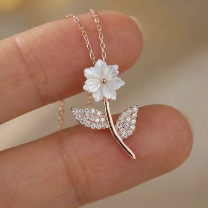A delicate celebration of nature and femininity, the INAARA Petal Whisper Pendant features a sculpted white blossom perched above two graceful leaves studded with sparkling pavé stones. Expertly crafted in 92.5 sterling silver with a warm rose-gold finish, the pendant hangs from a fine adjustable chain that sits elegantly at the neckline.
