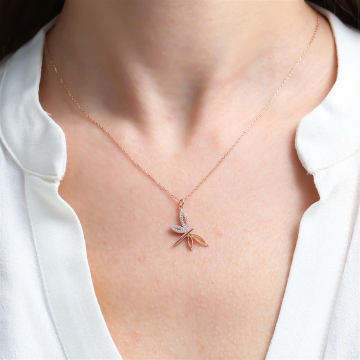 Sparkling Crystal Dragonfly Necklace In Rose Gold